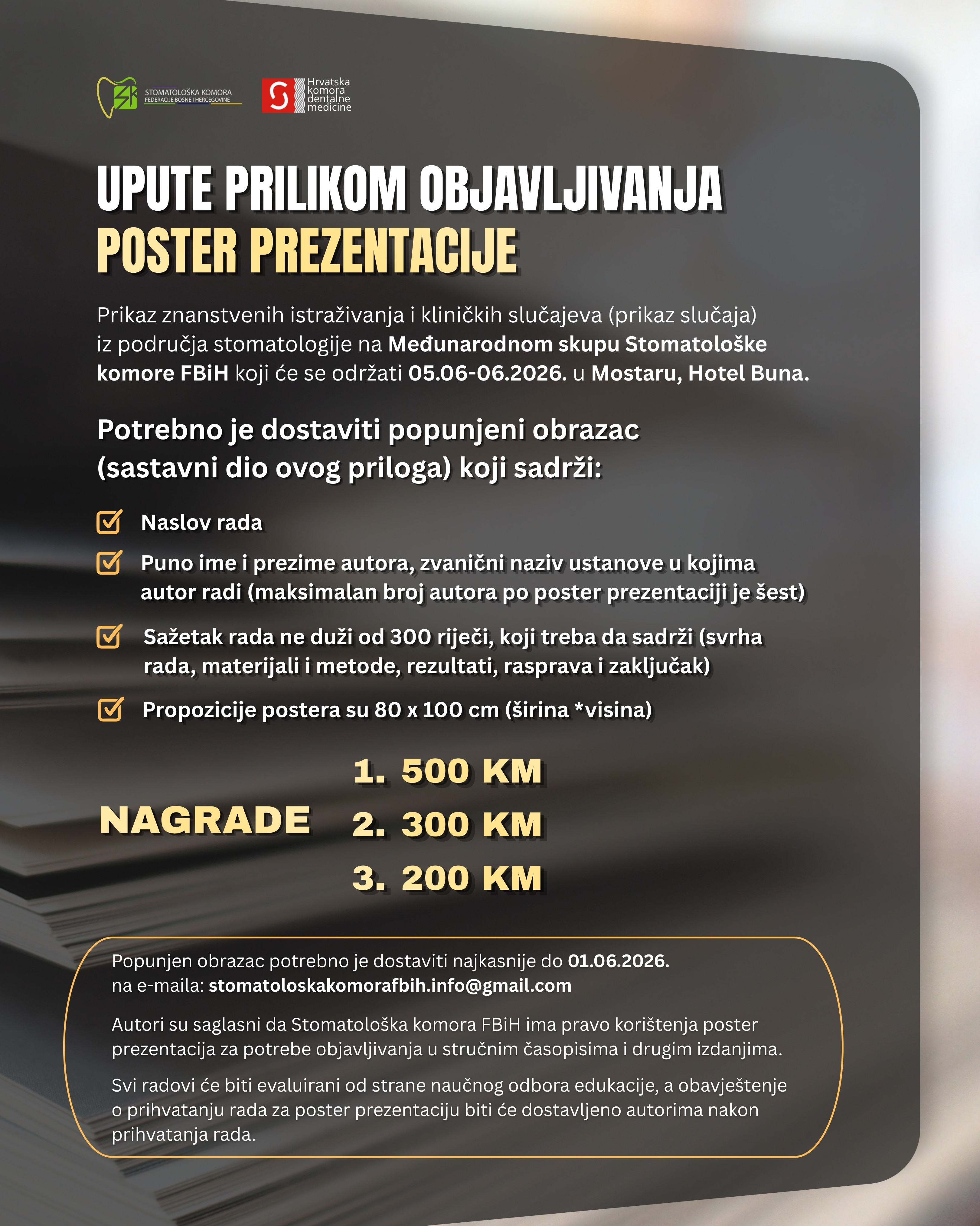 Poštovani članovi Stomatološke komore FBiH, Udruženje stomatologa u FBiH organizuje 10. kongres stomatologa BiH sa međunarodnim učešćem, koji će se...
